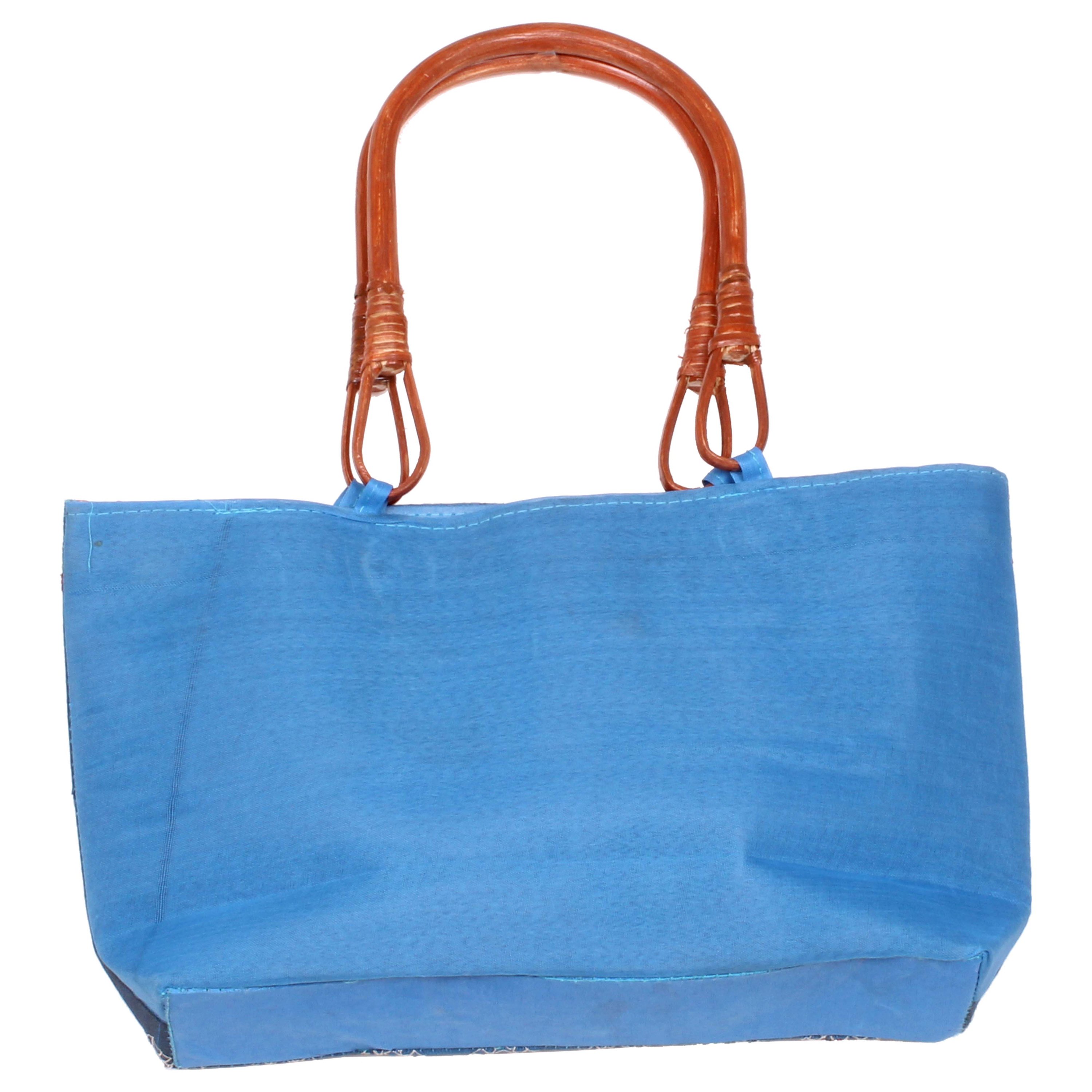 Silk Sequence Work Wood Handle Handbag