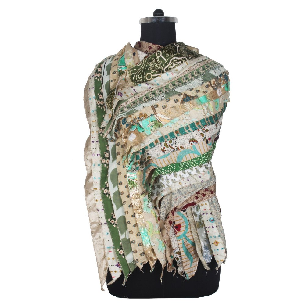 Vintage Recycled Silk Sari 15 Strip Scarf Stole Patchwork Scarves Assorted SC 707