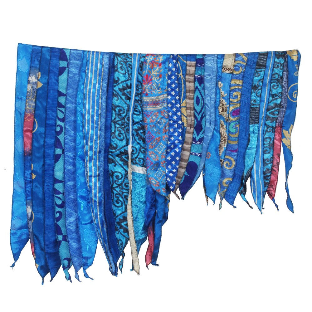 Vintage Recycled Silk Sari 15 Strip Scarf Stole Patchwork Scarves Assorted