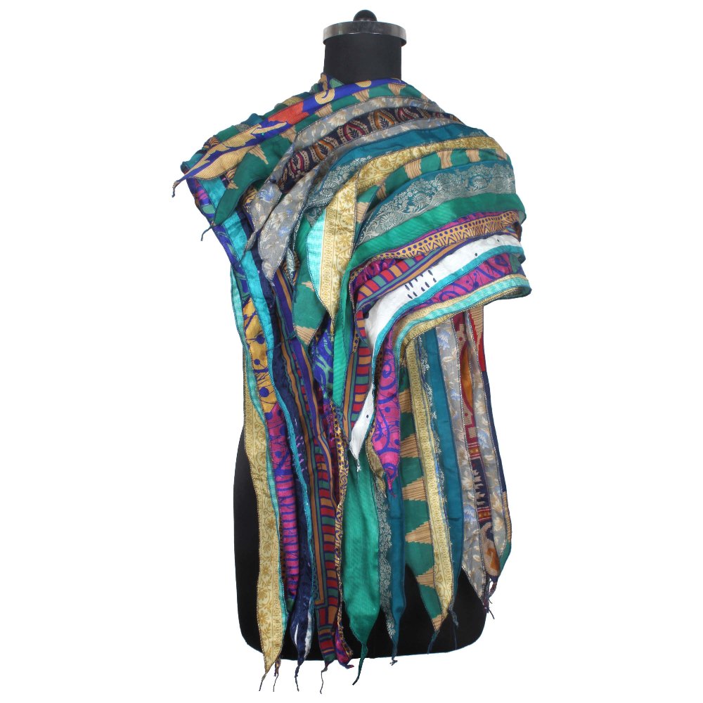 Vintage Recycled Silk Sari 15 Strip Scarf Stole Patchwork Scarves Assorted